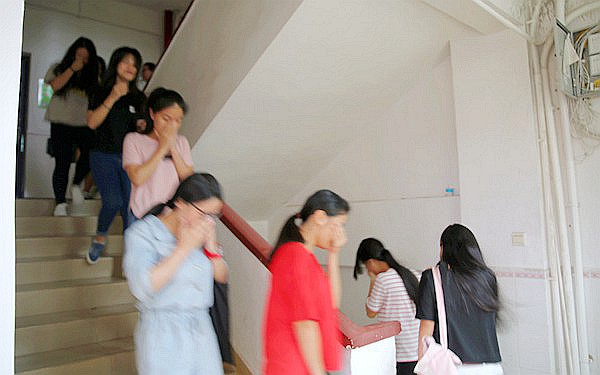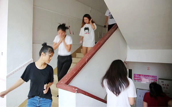下午5时,随着一声代表发生火情的哨响,我院第十栋学生宿舍楼的同学们按照规范的自我保护动作迅速却井然有序的从该宿舍楼里撤离,现场秩序井然,快而不乱,在短短的2分钟内实现完全撤离。快中求稳、稳而不乱,是在遇到紧急情况时最需要做到的两点,而同学们在演戏中的表现正是做到了这两点。在演练时,各监督人员各就各位,组织学生疏散,并在演练前指导学生当灾难来临时如何快速脱离险境的逃生知识,使学生对防灾减灾救灾有了进一步认识和了解。
