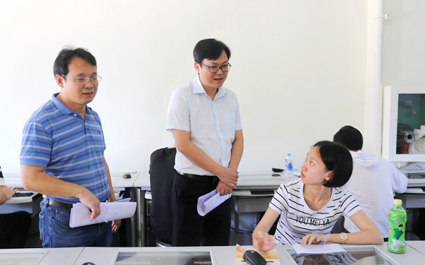 自查汇报结束后,检查小组一行实地检查了我院同声传译实训室、酒店综合实训室、日韩风情实训室等的安全管理情况。