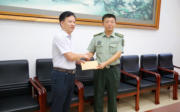 在愉快交流的氛围当中,部队领导还为我院教师送上节日慰问金,双方表示今后将继续深入开展双拥工作,维护好、巩固好、发展好军民情谊,携手共创美好的未来。
