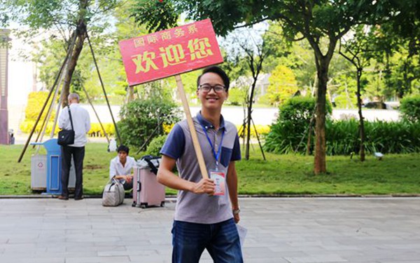 稚嫩的面容,青涩的嗓音,紧张的眼神,刚刚走进了校园的新生们,茫然而不知所措。可是,可爱的学长学姐们心甘情愿的冒着炎炎烈日和滚滚热浪,只为给初来乍到的新生们最贴心的引导,让他们不再紧张,不再陌生,不再因为思念家乡而愁容满面,并致以最真实的最温暖的问候:亲爱的学弟学妹们,欢迎加入海外院这个大家庭!