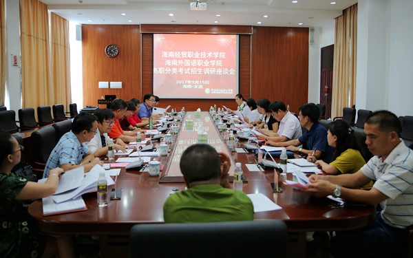9月15日下午,海南经贸职业技术学院一行参访我院,学院党委副书记、纪委书记徐畅接待来访者一行,双方在综合楼7楼第一会议室召开高职分类考试招生调研专题座谈会。参与此次座谈的有省考试局普招处原调研员王素英、以及海南经贸职业技术学院的省高考综合改革研究课题组成员一行7人。我院教务处、学生处、工会及各系部相关负责人参加座谈。座谈会由教务处负责人赖东明主持。