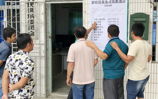 村民们查看招聘信息