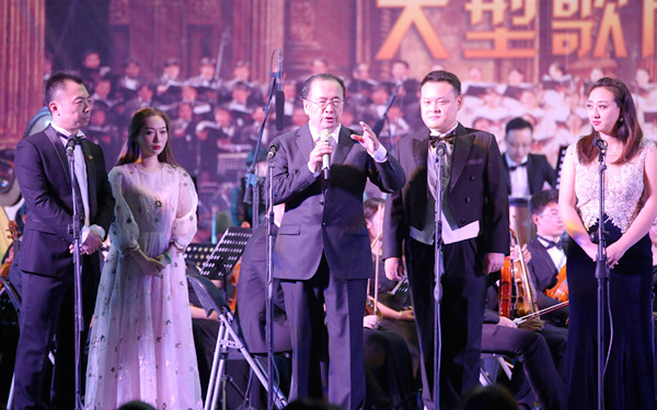 音乐会最后,学院领导和嘉宾们上台与歌唱家们合影留念。