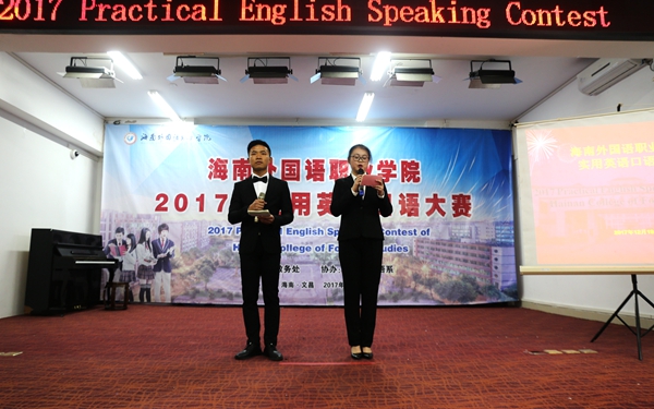 为通过竞赛进一步深化学院英语课程教学改革,不断激发学生学习英语的积极性,提高学生的英语口语表达能力,同时为我院参加明年全省实用英语口语大赛储备人才,12月19日晚,由教务处主办,团委、英语系协办的我院2017实用英语口语大赛在图书馆多功能报告厅成功举办。由各系部选拔推荐的20余名同学参加了比赛专业组和非专业组的角逐。我院景志华教授、刘丽艳教授、刘榜离教授、樊永前教授、张萍主任、翁天月老师、温春雨副主任担任大赛评委,国际商务系外教Helen老师担任主试官。