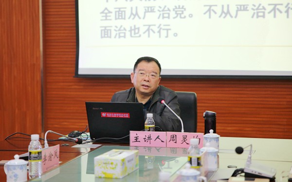 1月15日下午,我院举办“每月一教育”专题报告会,邀请省纪委省监委驻省教育厅纪检监察组组长、省教育厅党组成员、省委教育工委委员周灵均为广大党员干部作全面从严治党辅导报告。学院党委书记陈礼民,院长李渝凤,党委副书记、纪委书记徐畅,副院长周运诗,副院长杨学前,党委委员、党委办公室(宣传统战部)主任(部长)梁松出席报告会。全体副科级以上干部聆听了报告会。报告会由徐畅副书记主持。