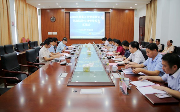 随后,周运诗副院长从充分做好各项开学条件保障工作、严格抓好各项校园安全稳定工作和存在的主要问题及下一步工作思路等三大方面,汇报了我院2018年春季开学暨学校安全风险防控专项工作情况。