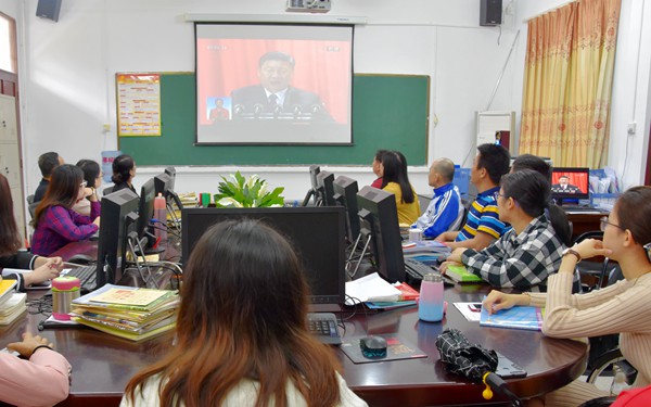 上午9时,在各大会议室、多媒体教室内,我院党员干部、广大师生认真收看闭幕会,认真做笔记。习近平主席在闭幕会作的重要讲话,深深鼓舞了大家。我院旅游系党总支主要负责人林明霞表示,作为基层党员干部,要始终围绕党的领导核心,始终将广大师生的幸福放在欣赏,带领广大师生为幸福而奋斗,用奋斗来创造美好生活。
