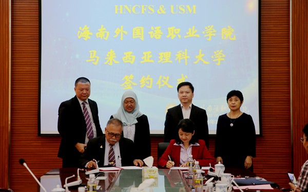 3月22日上午,马来西亚理科大学副校长拿督·阿德楠·胡瑟因博士、教授,马来西亚理科大学人文学院院长娜丽玛·萨玛特博士、教授,协调专员吴尚雄博士、副教授一行3人访问我院,我院李渝凤院长、杨学前副院长热情接待了来宾,双方在综合楼七楼第一会议室开展座谈,就两校合作事宜进行深入交流,并共同签署了两校合作办学备忘录。党委办公室、学院办公室、教务处、国际交流中心和各相关系部主任、部分教师参加座谈。杨学前副院长主持座谈会。