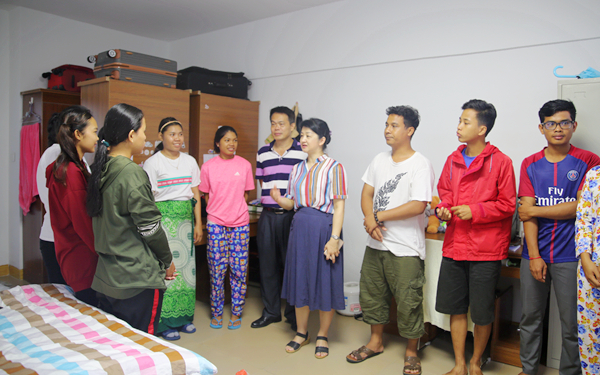 从昨日(15日)开始,学院领导就开始分批深入校园各个场所,开展防风工作实地检查。今日(16日)上午,我院在设在图书馆多功能报告厅的防风指挥中心再次召开校园防风专题工作会议,跟进落实有关防风事宜。会后,院长李渝凤,党委副书记、纪委书记徐畅,副院长周运诗,副院长杨学前,党委委员梁松等一行带领有关职能部门负责人分别检查了综合楼、体艺馆、综合实训楼、学生宿舍区、教师宿舍区、食堂、运动场、外专楼等场所,听取了有关职能部门关于防风工作推进情况汇报,对校园防风工作进行再检查、再推进、再部署。检查期间,学院领导还重点深入学生宿舍楼、留学生宿舍楼,为学生送去慰问,加强安全教育,安抚学生情绪。