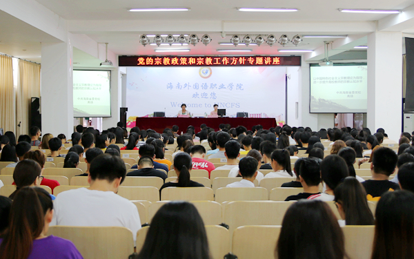 为深入宣传贯彻党的宗教政策和宗教工作方针,提高广大师生员工宗教政策、理论水平,9月26日下午,我院在图书馆多功能报告厅举办党的宗教政策和宗教工作方针专题讲座,邀请中共海南省委党校哲学部讲师、宗教学硕士、马克思主义理论博士研究生高扬老师来校为师生讲学。学院党委副书记、纪委书记徐畅主持讲座。副院长杨学前到场聆听讲座。