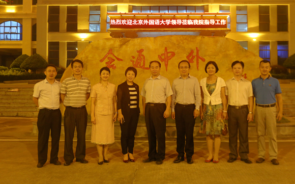 9月26日晚,来琼访问的北京外国语大学党委书记王定华、副校长贾德忠在省教育厅厅长曹献坤的陪同下,百忙之中莅临我院指导工作。我院院长李渝凤,党委副书记、纪委书记徐畅,副院长周运诗,副院长杨学前热情接待了来访一行。