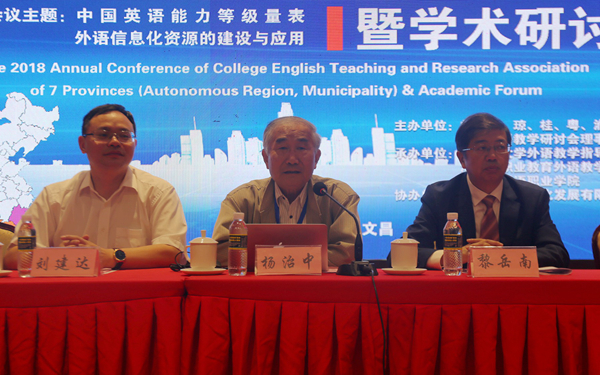 广东省大学英语教学指导委员会主任、广东外语外贸大学副校长刘建达教授,成都电子科技大学首席教授伍忠杰,大连外国语大学博士生导师杨俊峰教授围绕会议主题先后做主旨发言。