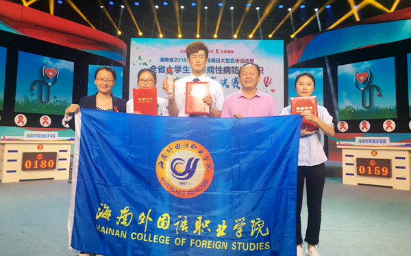 12 月1日是第31个“世界艾滋病日”。为了向大学生普及艾滋病性病相关防治知识,提高学生对艾滋病性病危害的认识,进一步推动艾滋病防治工作,营造全民参与艾滋病防治工作的良好氛围,海南省卫生健康委员会和海南省教育厅联合开展了全省大学生艾滋病性病防治知识电视竞赛活动。11月25日,活动决赛在海南广播电视总台落下帷幕,8所高校入围决赛。由2018级应俄班陈太山、2017级外贸1班陈素萍、2017级国际物流班李燕三位同学组成的我院代表队在比赛中经过四轮激烈比拼,最终荣获三等奖的好成绩。