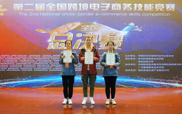 12月1日,第二届全国跨境电子商务技能竞赛总决赛在常州落下帷幕,我院国际商务系16级电子商务专业王朝英、郑嘉龙、张家妃三名同学参加比赛,在经过初赛阶段选拔和决赛阶段激烈比拼后,他们最终获得了总决赛团体三等奖的好成绩,我院也同时被竞赛组委会评为优秀组织单位。