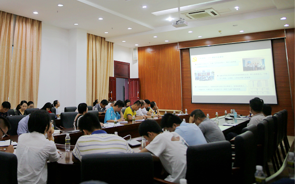 4月17日下午,我院在综合楼7楼第二会议室举行第三场党务培训活动,邀请海南大学外国语学院学生工作与团委办公室副主任刘颖敏做“基层党组织标准化建设”专题讲座。学院党委委员、党委办公室(宣传统战部)主任(部长)梁松主持讲座,各党委总支部(直属党支部)书记、委员以及各党支部书记、委员参加讲座。