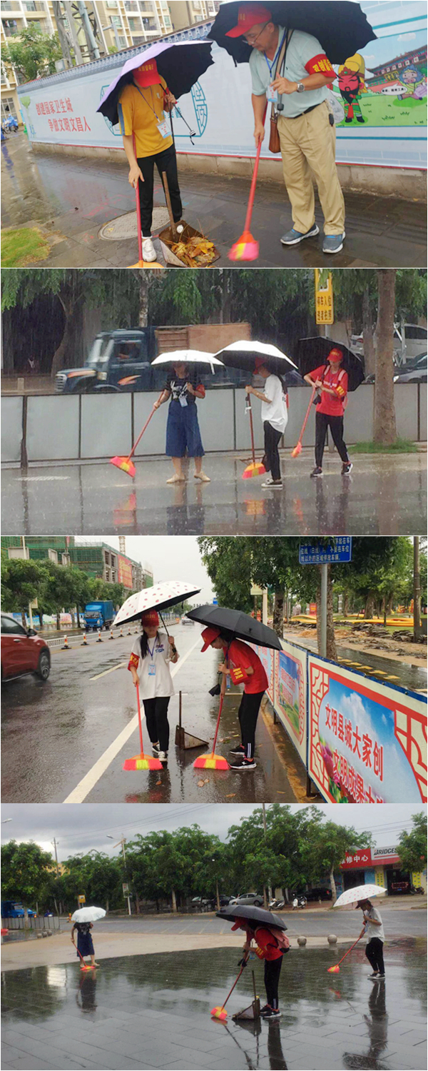 从白天到夜晚,无论烈日或者下雨,在整治环境卫生的最前线,都能看到我院师生的身影,在打扫过程中,老师学生们坚持不放过每个角落,不放过一个烟头、一片树叶、一个塑料袋,仔细认真地清理街道,与各商铺和住户进行耐心地沟通劝导。他们积极参与“双创”,为打造文昌美好环境贡献一份力。