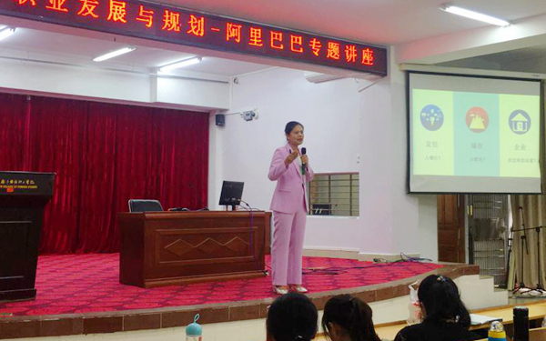 讲座第二项内容由阿里巴巴集团在海南的合作单位——海南鼎方科技集团有限公司梁晓莉总经理从“大学生该如何找工作”、“如何选择企业”、“外贸类岗位的人才需求”等方面给同学们进行了详细介绍。她风趣幽默的话语使讲座现场充满了欢声笑语。