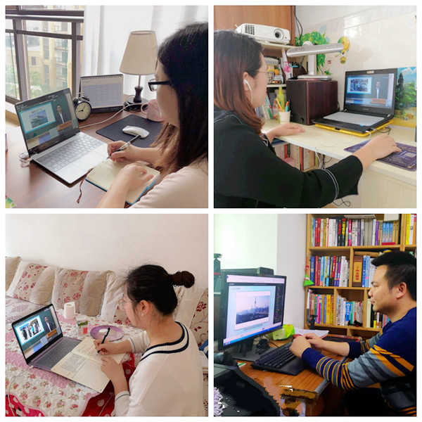 全体师生或在工作岗位上或在家中以各种形式收看开学第一课