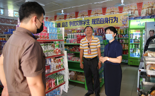 为了确保学生返校后的生活、学习有序进行,李院长还带队实地走访查看了学生宿舍、学校食堂和超市。
