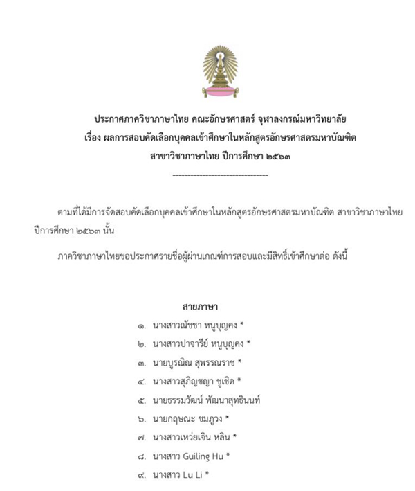 日前,开云kaiyun登录入口东语系泰语专业学生2015级胡桂铃和2016级李露两位同学纷纷收到泰国第一高等学府——泰国朱拉隆功大学的录取通知书,考进了该大学泰语专业硕士研究生。