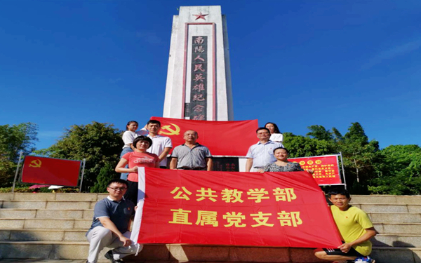 为庆祝中国共产党成立99周年,进一步加强基层党组织和党员队伍建设,弘扬党的优良传统,营造爱岗敬业、吃苦耐劳的良好氛围,深切缅怀为海南人民的解放事业长期坚持琼岛革命斗争和英勇渡海作战的革命前辈、革命烈士,7月17日下午,公共教学部直属党支部在支部副书记李诗钰的带领下赴“抗日模范乡”——文昌市南阳墟开展“七一”主题党日活动——参观南阳人民英雄纪念碑和南阳革命纪念园。