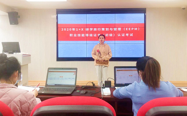 为贯彻落实《国家职业教育改革实施方案》(国发﹝2019﹞4号)文件精神,深化职业教育改革、创新我院人才培养模式,推进“1+X”研学旅行策划与管理证书制度试点工作,12月5日、6日两天时间由我院旅游系组织开展了2020年1+X研学旅行策划与管理(EEPM)职业技能等级证书(初级)认证考试的机考和实操考试,在疫情防控常态下规范了考试流程,圆满完成考务工作。