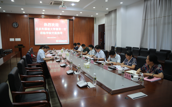 随后,杨学前副院长、梁松副院长以及与会人员,就进一步深化学院与北外的校际合作,全力承办好2021年全国职业院校技能大赛英语口语赛项比赛进行了深入细致的交流。