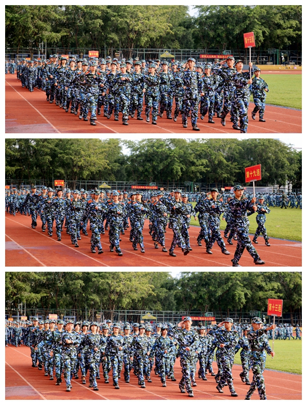 军训总结大会上,来自6个系部30支新生方队,迈着铿锵的步伐、高喊宏亮的口号、展现严整的军姿,彰显饱满精神状态。在秋日阳光映衬下,他们的朝气蓬勃,意气风发赢得了在场师生的阵阵掌声。