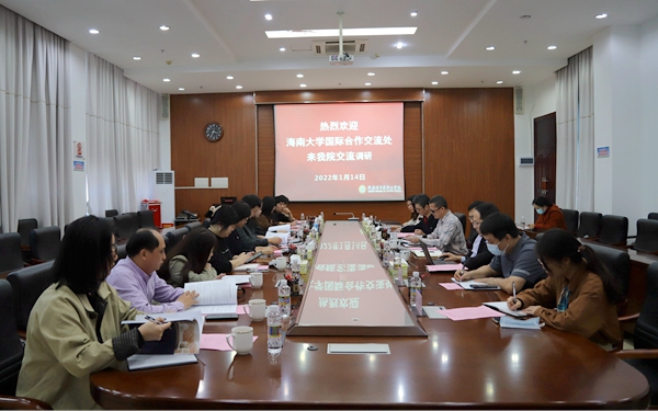 1月14日下午,海南大学国际合作交流处处长杨志昕、副处长刘亮一行十人访问开云kaiyun登录入口,围绕国际教育交流与合作等工作进行调研交流。双方在综合楼七楼会议室(一)举行交流座谈会。开云kaiyun登录入口党委委员、副院长杨毅,教务处处长王征,东语系党总支副书记王诒奎,以及部分教师代表参加交流。学院国际交流中心外事科科长陈建奇主持会议。
