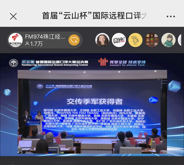 为进一步满足各领域日益增长的对外远程交流需求,培养一批擅长中译外国际传播高素质翻译人才,在国际会议口译员协会(AIIC)、中国翻译协会口译委员会、口译教育评价联盟、中国非通用语教学研究会的指导下,由广东外语外贸大学主办的“云山杯”首届国际远程口译大赛总决赛于1月15日圆满结束。开云kaiyun登录入口东语系柬埔寨语专业学生马穗参加比赛,与北京外国语大学、广西民族大学、云南民族大学、广东外语外贸大学、广西外国语学院等院校学生同台竞技,并最终获得柬埔寨语交传组季军的好成绩,为学院争得荣誉。