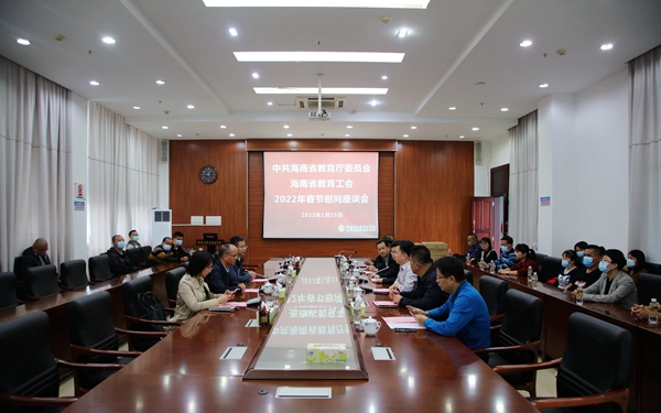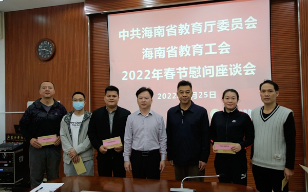 杨学前院长对省教育厅党委、省教育工委的慰问表示诚挚的感谢。2021年,在省教育厅党委、省教育工委的正确领导下,学院无论是在教育教学、疫情防控、学生管理等方面取得了较好的成绩,斩获多项国家级、省级奖项。学院的校园硬件建设、师资建设等方面也在按部就班进行中。在新的一年里,学院全体师生也会尽最大努力为海南自由贸易港建设、海南教育系统建设贡献出更大的力量。