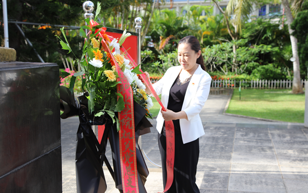 佴建乔代表机关党总支部向张云逸大将敬献花篮,并带领全体党员重温了入党誓词。