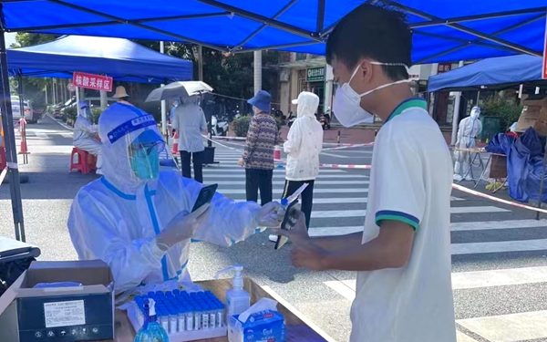 作为一名退伍军人,倪禹每天白天爬楼做核酸,晚上协助社区做好物资分配等保障工作,用自己的行动践行“若有战,召必回”的誓言。