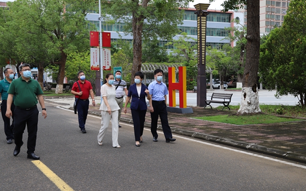 10月10日上午,海南省人民政府教育总督学潘惠丽带领省教育厅督导组到开云官网督导2022年秋季开学及学生返校工作。开云官网党委书记佴建乔,党委副书记、校长杨学前,党委委员、副校长梁松,党委委员、副校长杨毅全程陪同。