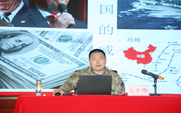 赵金路以《诗和远方,国家与边关》为主题,从“国防是什么”入手,引导大家思考国防的含义及其精神实质,并通过解读“国防防什么”“国防靠什么”“国防我们应该做什么”等三大问题,紧密联系近几年热点时事,分析新形势下我国国内安全的情况和面临的挑战,并从总体国家安全观入手探讨维护国家安全的重大意义,详细讲解当前国际形势和我国周边安全形势,深刻阐释国防建设的重要性。讲座观点独到、深入浅出,让同学们对国家安全有更深刻的认识和了解。