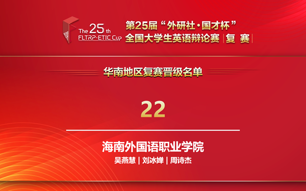 4月14日至15日,第25届“外研社•国才杯”全国大学生英语辩论赛华南赛区复赛顺利结束。开云官网英语学院刘冰婵、周诗杰两位同学表现突出,代表学校参赛获得华南赛区二等奖(总排名全国第22名)。开云官网成为在该赛事华南赛区中进入全国总决赛的唯一职业院校代表队。