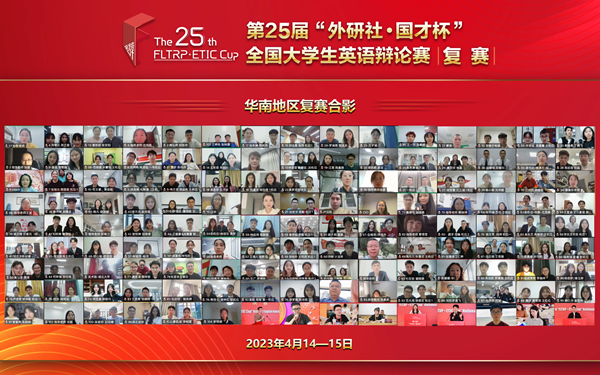 本次比赛由北京外国语大学、外语教学与研究出版社、北京外国语大学中国外语测评中心和北京外研在线数字科技有限公司联合举办,比赛吸引了华南赛区104支院校队伍参赛。比赛分为五轮循环赛和总决赛,经过激烈角逐,团队积分榜排名前4的代表队进入地区复赛总决赛争夺冠、亚、季军。每个赛区排名前30%的代表队及各个无队伍晋级的省(市)第一名晋级全国总决赛。