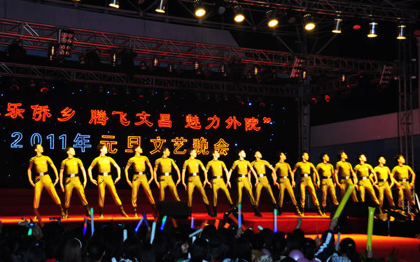 12月29日晚,一台由我院联合中共文昌市委宣传部、共青团文昌市委员会、文昌市旅游发展委员会、文昌市文化广电出版体育局等单位共同举办的“欢乐侨乡、腾飞文昌、魅力外院”2011年元旦文艺晚会在我院田径运动场隆重举行,一个个别具文昌乃至海南民俗特色的节目将人们辞旧迎新的欢乐心情表达得淋漓尽致。