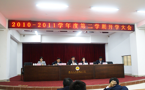 2月19日下午,我院在图书馆多功能报告厅隆重举行了我院2010-2011学年度第二学期开学大会。学院党委书记韩祝畴、院长袁陵南、党委副书记兼纪委书记莫运深、副院长陈礼民、副院长李渝凤及全体教职员工出席大会。