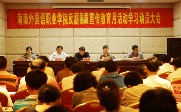为深入学习贯彻党的十七届五中全会、十七届中央纪委第六次全会和五届省纪委第六次全会精神,努力推进我院反腐倡廉体系建设,4月12日下午,我院在会议厅正式启动反腐倡廉宣传教育月活动。学院党委书记韩祝畴、院长袁陵南、党委副书记兼纪委书记莫运深、副院长陈礼民、副院长李渝凤及各部门党政负责人、管理干部等出席动员会。