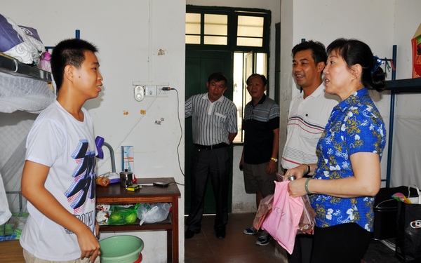 韩祝畴书记、袁陵南院长、陈礼民副院长在检查学生公寓时着重查看了公寓内部的设施,不时询问学生的感受,并强调一定要尽一切可能为学生学习提供保障。