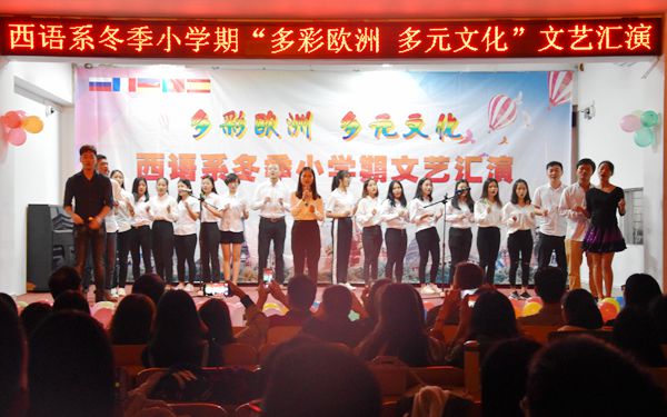 同学们通过PPT演讲的方式,轻松的学习了俄语、法语、德语、西班牙语、葡萄牙语的对应语种国家的名俗文化;通过语音语调比赛和知识竞赛,在外教的指导与纠正下,提升语言能力,掌握更多更全面的专业知识,寓教于乐;通过学习民族舞蹈,学唱歌曲,在这种轻松愉悦的氛围下,边学边玩,快速了解了所学语言国家的民族魅力与特色,让他们学会了自主动手,自我安排,边学边练的良好机会,培养了学生们专注的学习态度,提升学习能力。通过开展“学习经验交流会”,让学长学姐们言传身教,以自己的经历与教训为例子,向学弟学妹们传授实用而快捷的学习方法,有效的提高学习效率。最后,以“文艺汇演”作为此次冬季小学期的结尾,为学生们提供了学以致用、展示自我的舞台。