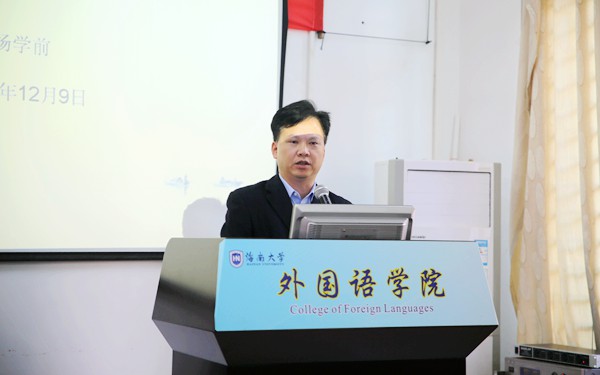 我院特聘教授,海南省认知诗学会发起人熊沐清教授在讲话中对参与此次大会的召开付出努力工作的所有人员表示感谢。他指出,现如今,认知诗学研究实现全球化,我国对认知诗学的研究也备受国际社会的肯定。此次成立海南省认知诗学学会,能够为海南省外语学术研究提升到新的水平做出积极贡献。