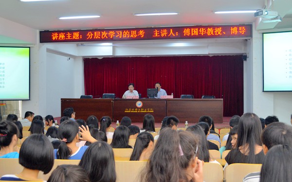 10月15日上午,海南大学副校长傅国华教授一行访问我院,在图书馆多功能报告厅为我院师生“分层次学习的思考”专题讲座。