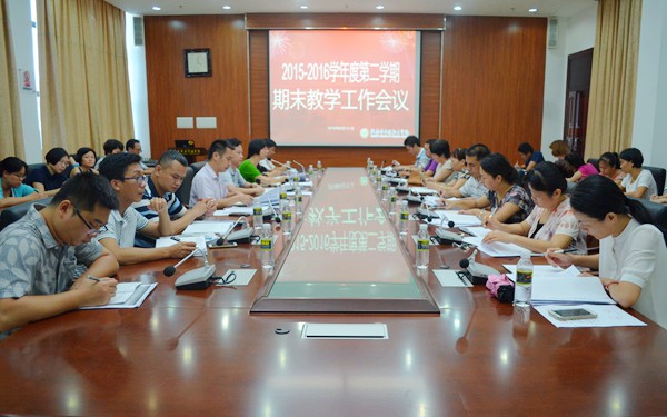 6月16日下午,我院在综合楼7楼第一会议室召开2015-2016第二学期期末教学工作会议,回顾总结本学期教学工作开展情况,部署安排期末以及下学期有关工作。杨学前副院长出席会议并讲话。教务处、各系部等教学单位有关人员参加会议。