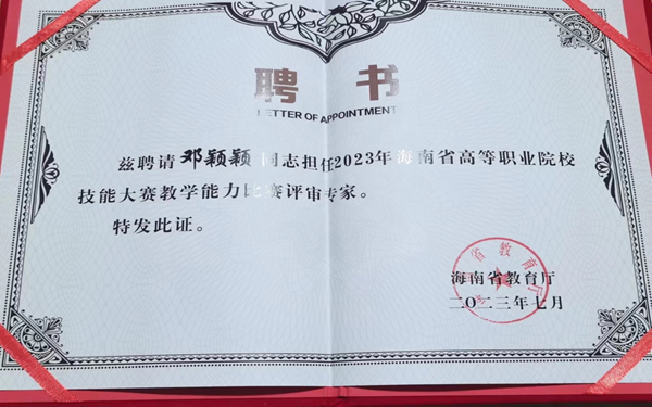 开云官网党委委员、副校长邓颖颖研究员受邀担任2023年海南省高等职业院校技能大赛教学能力比赛评审专家
