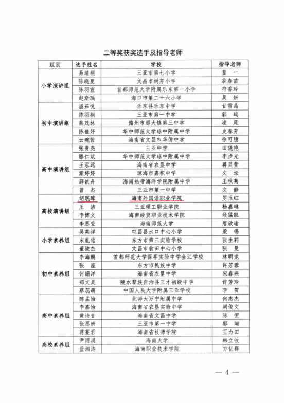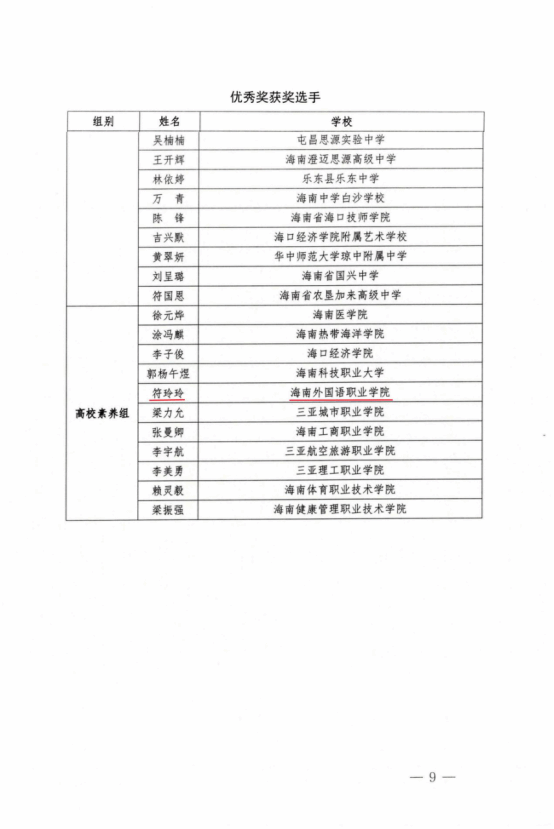 近日,由海南省教育厅主办的第八届学生“学宪法 讲宪法”比赛圆满结束,来自全省各市县、各高校、省属中职和厅直属中学的70支代表队的249名选手参加了比赛,为历届最多。开云官网学生表现优秀,在比赛中喜获佳绩,其中,胡珉璋同学获得高校演讲组二等奖(指导老师罗玉红),符玲玲同学获得高校素养组优秀奖。
