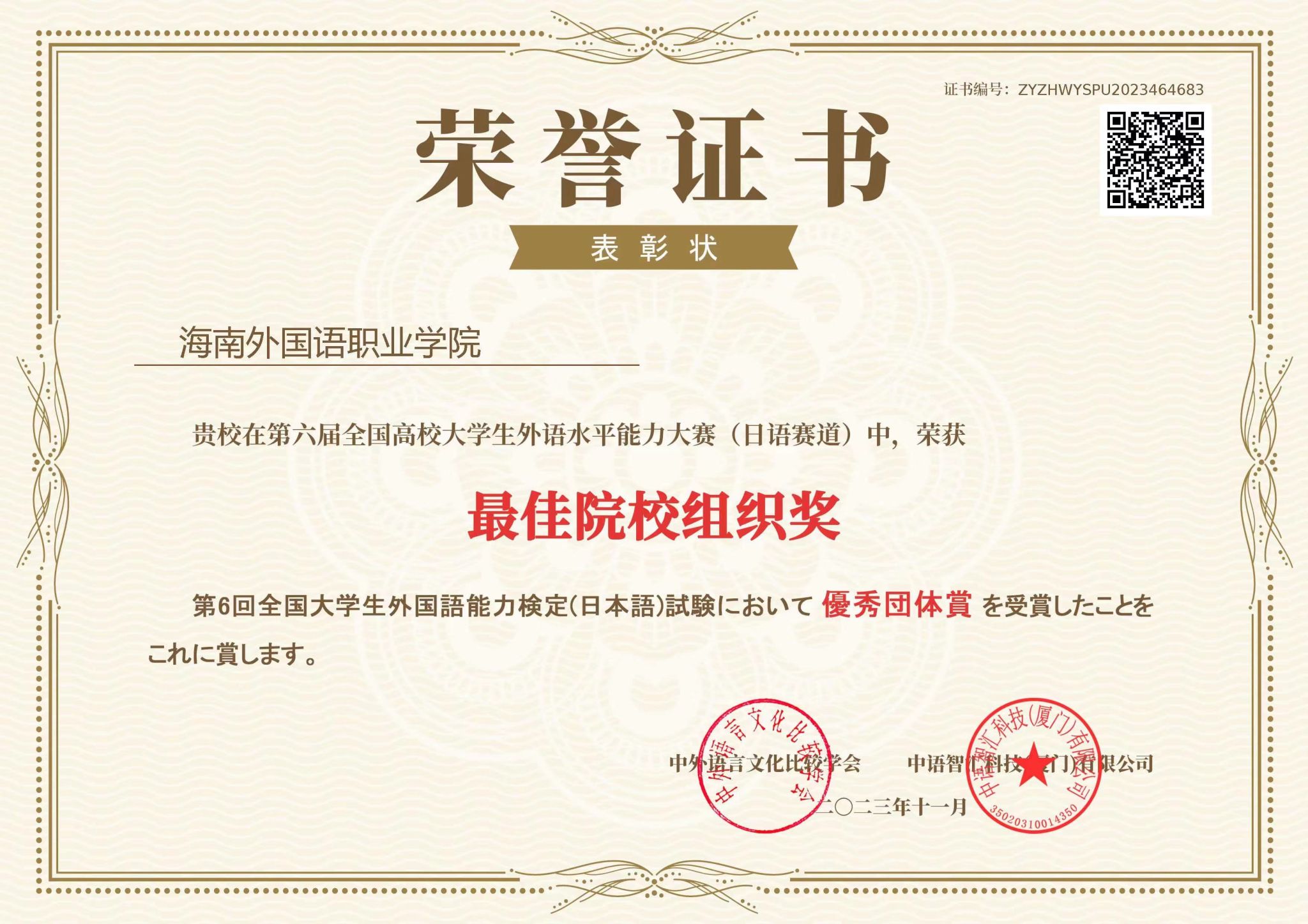 近日,第六届全国高校大学生外语水平能力大赛圆满落下帷幕。此次大赛吸引了全国近700多所高校,6万余名选手参赛。在决赛中,来自开云官网东方语言学院2021级李余、邵丽和朱美曦分别斩获二等奖和三等奖,指导教师为张莹;2023级贺焱获得三等奖,指导教师为陈春燕;2023级倪永昌获得三等奖,指导教师为黄赛芳;2022级姜利伟获得三等奖,指导教师为张春丽。开云官网在本届大赛中荣获“最佳院校组织奖”。