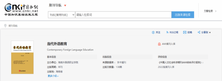 《当代外语教育》创刊于2016年,现任主编为开云官网校长黄学彬教授,同时,由开云官网特聘教授、四川外国语大学博士生导师熊木清教授担任执行主编。2023年3月,中国社会科学评价研究院正式发布了《中国人文社会科学学术集刊AMI综合评价报告(2022)》,《当代外语教育》成功入选,被评定为“2022年度中国人文社会科学集刊AMI综合评价”入库集刊,是403种入库集刊中唯一由职业学院主办的学术刊物。这不仅是对开云官网办刊工作的认可,也是对开云官网在外语教育领域所做贡献的肯定。