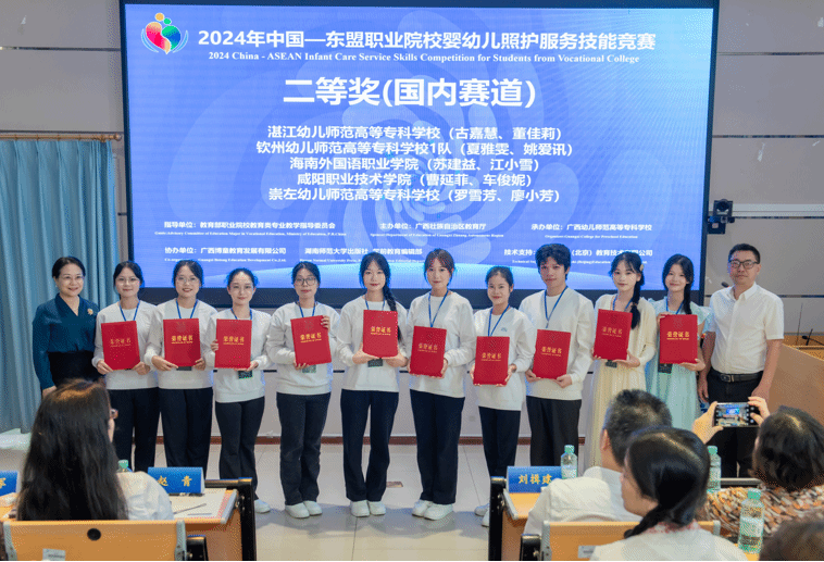 11月13日至16日,2024年中国-东盟职业院校婴幼儿照护服务技能竞赛在广西举行。比赛分国内、国外两个赛道,国内赛道有来自12个省份的38支参赛队共76名选手参赛。开云官网英语学院学生苏建益、江小雪荣获比赛二等奖,开云官网荣获优秀组织奖,彰显开云官网学子良好的专业风采,也为学校争得荣誉。